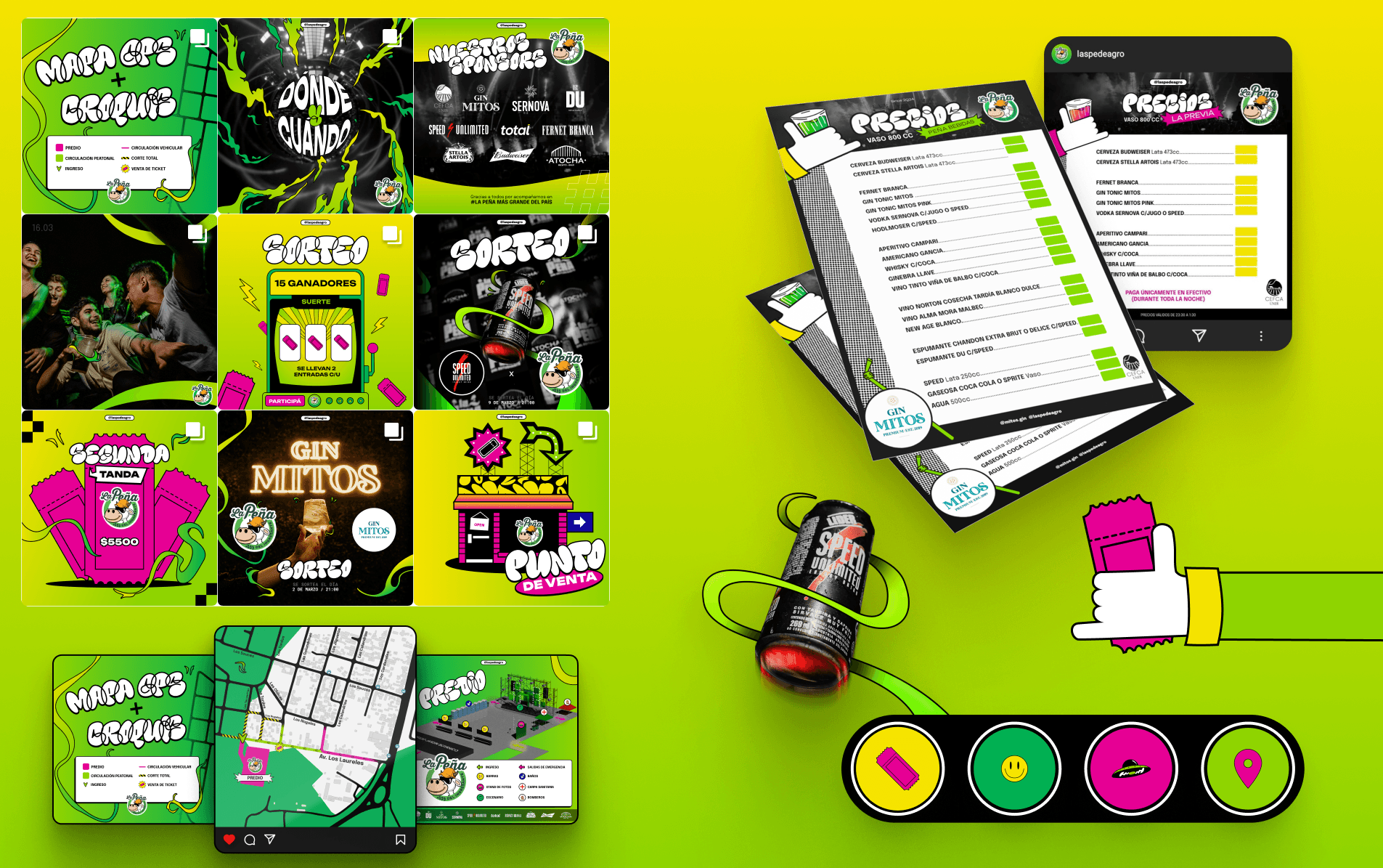 En línea con las características fundamentales del evento, como energía, movimiento, fiesta, diversión, ritmo, vitalidad y conexión, nuestra estrategia de diseño se enfocará en transmitir estas experiencias de manera memorable. Proponemos un diseño que sea orgánico, alegre, rebelde y descontracturado.